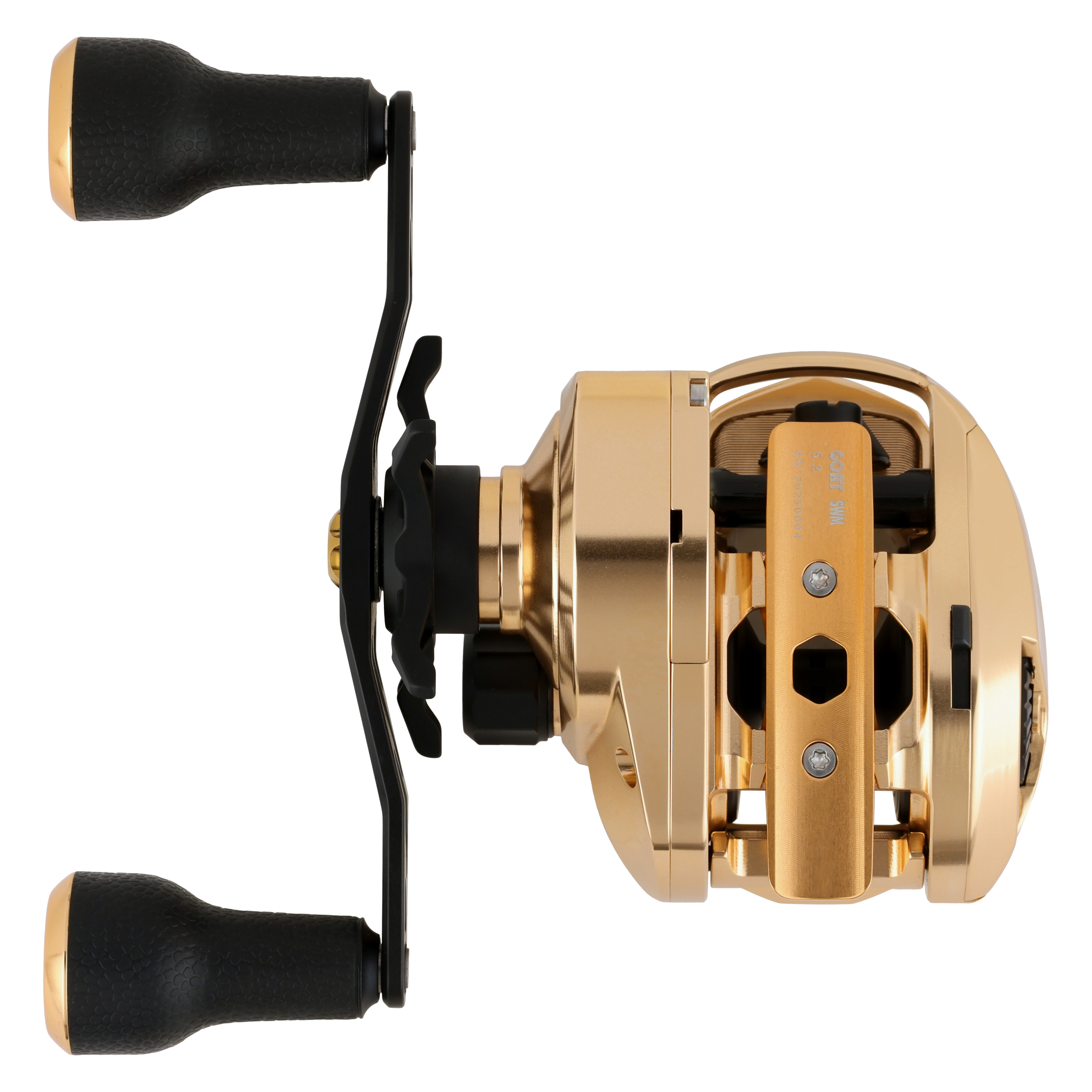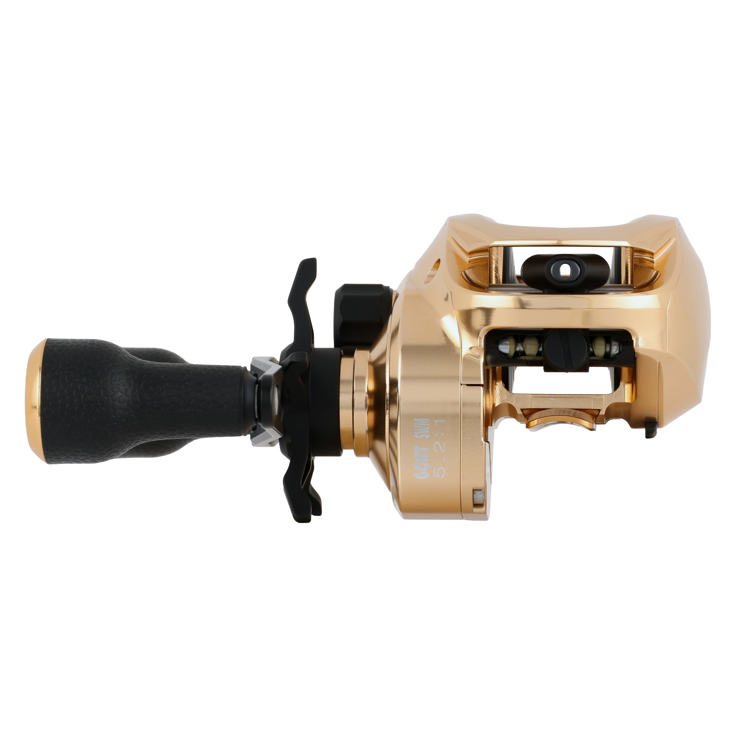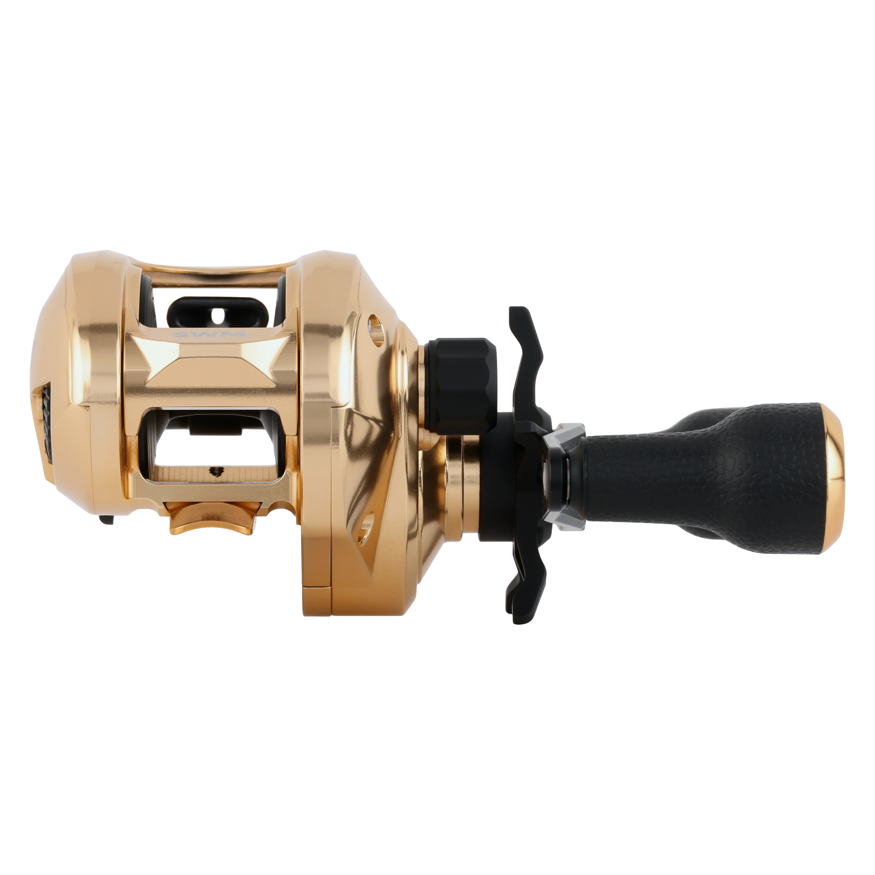 And let's talk control. The custom-milled titanium crank arm, equipped with oversized knobs, isn't just for show—it's a game-changer. Feel the difference as you effortlessly crank in those massive baits, commanding every twitch and glide with precision and finesse. Whether you're bombing casts or powering through a tough fight, the G.O.A.T. SWM puts you in the driver's seat.